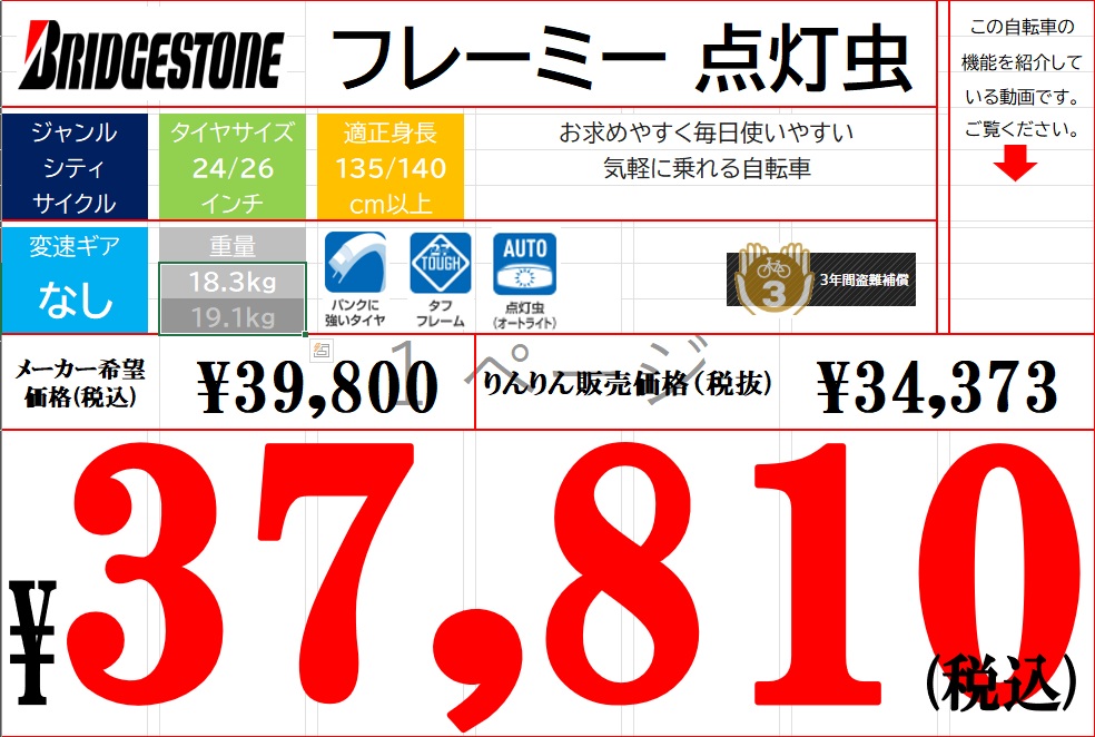 店舗:曳舟店 車種:一般車 ファミリーサイクル メーカー:BRIDESTONE メーカー詳細:ブリヂストンサイクル東日本販売 在庫数:1台 価格:37,810円 お問い合わせ番号:10002511