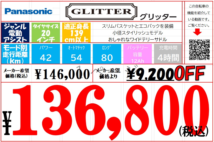 店舗:吾妻橋店 車種:電動アシスト 小径・折り畳みモデル メーカー:Panasonic 在庫数:1台 店頭販売 店頭受取価格:136,800円 ネット販売 店頭受取価格:- ネット販売 自宅配達価格:129,800円 お問い合わせ番号:10003428
